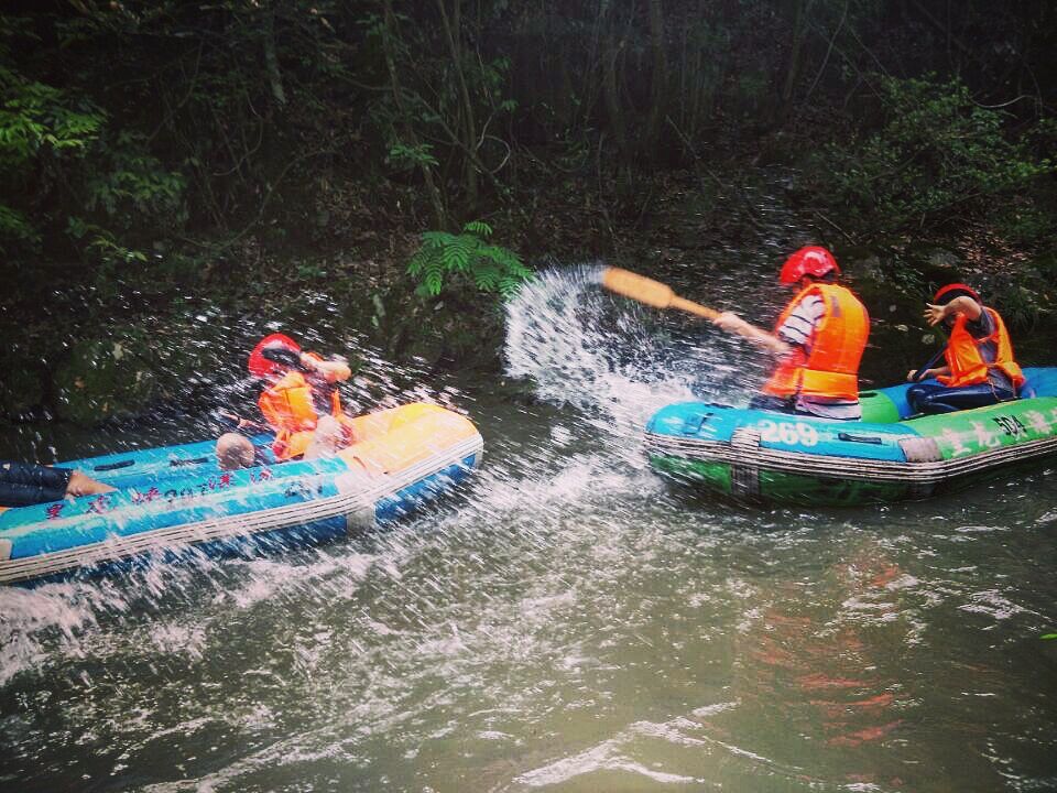 到达目的地后,同学们开始进军大峡谷体验漂流。在感叹大自然的创造力的同时,同学们分为两人一组兴致勃勃地穿上救生衣。沿着峡谷蜿蜒流动的河水,乘着橡皮艇顺流而下,四面青山环绕,漂流于丛林其间,欢乐激荡着水花。一个多小时的漂流就在刺激与惊险中结束。