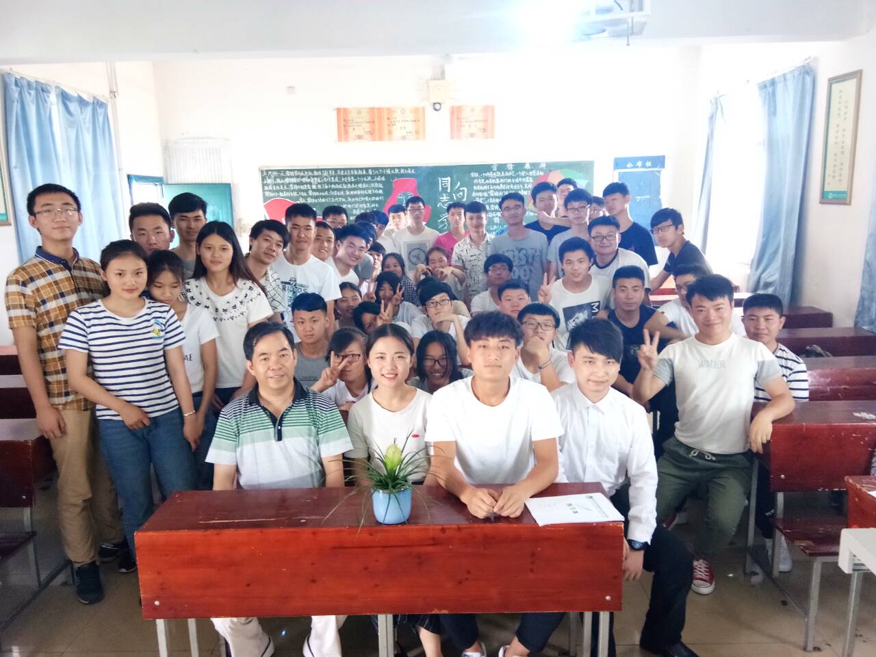 最后,由肖智清副院长做点评,他再次跟同学们强调:文明是一种养成、是一种修养,是一种长时间的历练,它会影响我们的一生。我们中华民族是文明礼仪大邦,因此我们每一个中国人更是应该注重礼仪,注重文明,让文明变成一种习惯。我们应人人文明、时时文明、处处文明,将文明从自身引申到校园、社会、民族、国家、乃至整个世界。这次班会,则是这一切良好的开端和起点。同学们聚精会神的听着两位老师的教诲,一张张年轻的面庞上尽是认真和坚定。班会圆满结束,肖副院长、高老师与全班同学拍照留影。