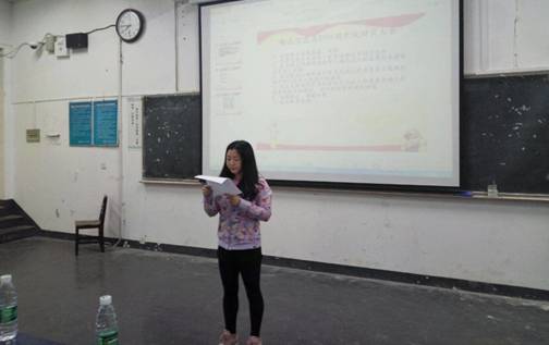 此次大会在国歌中拉开了序幕。首先,由物信系团总支书记丁晓老师宣读物信学【1】号文件,关于学生思想政治工作委员会成员认识的通知。随后主任谢何琪做第八届思政工作委员会主席团成员的分工安排,并对学生思想政治工作委员会工作做总结,对以后的工作做计划报告。主任谢何琪主要负责各项活动的开展,做好思政日常重要工作并收集好早自习成员的建议,对我系思政的安排作出更改,使思政工作更加完善。副主任张浏阳主要负责早自习教室的管理和活动策划、统筹,早自习的各项学习工作,反映早自习的基本情况,组织和策划各项工作的实施。秘书长李静主要负责活动开展前的宣传工作,督促秘书处成员画好宣传海报,书写每次活动开展后的新闻稿,带领秘书处成员早训,并收集好秘书处成员的建议。思政各成员秉承互相监督、互相督促的原则。同时也对工作作出总结:组织了习惯文明养成的辩论赛,知识抢答竞赛,清除牛皮鲜等活动,准备在已经到达的五月和即将到来的六月组织党知识的比赛,考察预备党员,入党积极分子的党性知识。为发展新一批预备党员做准备。