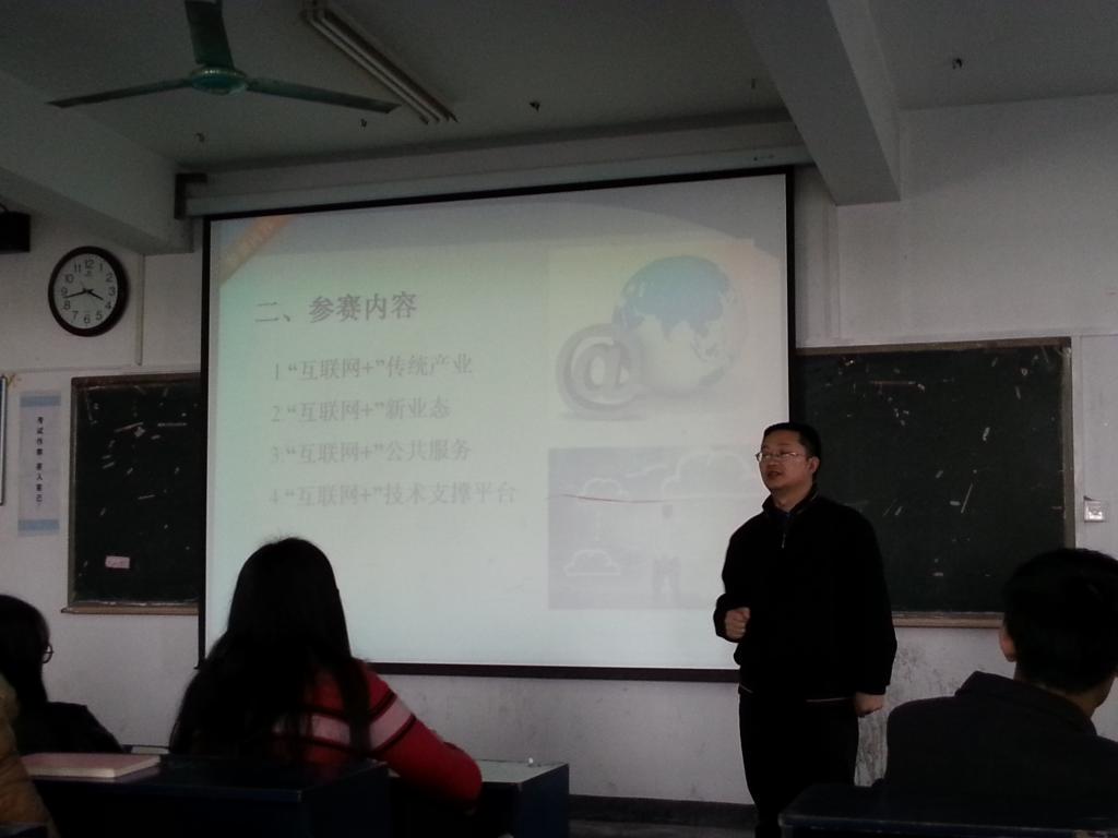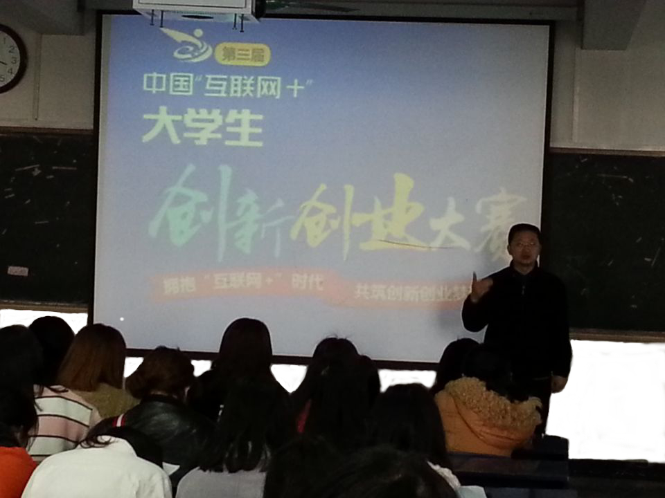 4月11日下午3:30,物流经贸系在教学楼400教室,组织了大学生“互联网+”创新创业大赛培训,培训由伍瑛老师主讲,来自物流经贸系的80余名学生参加了此次培训。大学生“互联网+”创新创业大赛是中国教育部组织的一项全国性比赛,目的是进一步激发高校学生创新创业热情,展示高校创新创业教育成果,搭建大学生创新创业项目与社会投资对接平台。该项比赛是为贯彻落实《国务院办公厅关于深化高等学校创新创业教育改革的实施意见》(国办发〔2015〕36号),从2015年开始举办的。