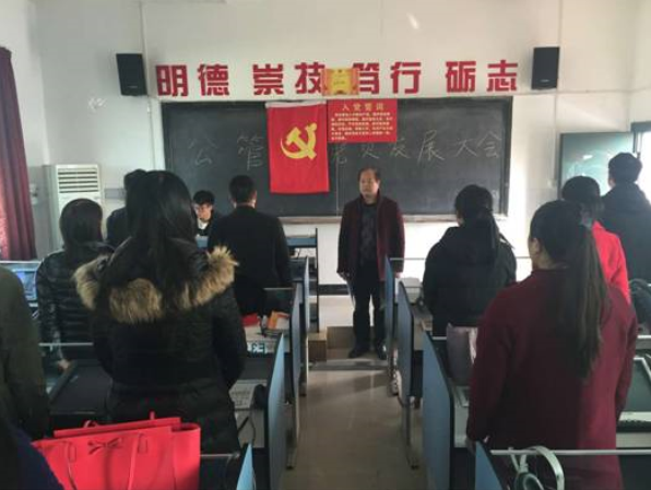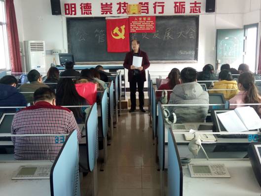 2016年12月30日下午2点,由公共管理系思政委员会组织的预备党员转正暨党员发展大会在科技实训楼404顺利召开,系学生干事高行刚主持会议、系部负责人赵翾、团总支书记陈玮以及公共管理系全体教师党员、学生党员出席本次大会。