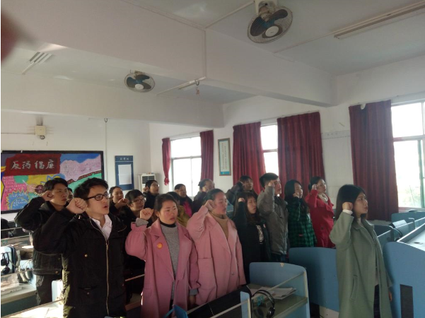 最后,陈玮老师带领全体党员与预备党员面对党旗宣读了入党誓词,声音庄严而高亢,久久回荡在会场,展现出了我系党支部对党的崇高敬意。