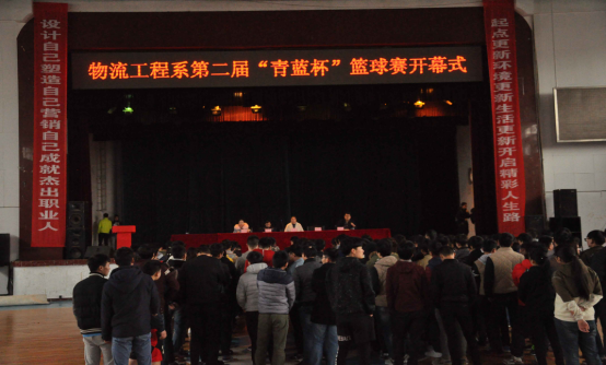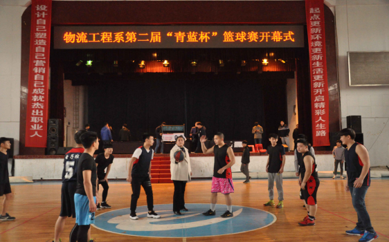 为丰富大学生的课余生活,提高大学生的综合素质,增强团队精神和集体凝聚力,展现大学生积极向上的风貌,提高同学们的身体素质,物流工程系本学期迎来第二届“青蓝杯”篮球赛并于2017年3月14日13:50在体育馆举办了开幕式。物工系主任钟静、系党总支副书记梁飞、系学生干事梁林飞、系团总支书记高琪昕以及辅导员马菊出席开幕式。