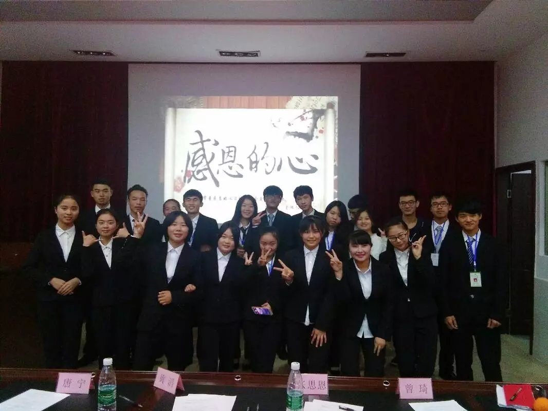 此次“心的感恩”活动心理健康部的成员积极筹划准备。下午6:30心理健康部的小伙伴很快完成了活动现场的布置,并引导评委,参赛选手,以及嘉宾们到指定地点参与活动。全体起立奏国歌院歌之后,由主持人宣布比赛开始。先由一段有关于感恩的公益小视频带领大家进入状态之后演讲比赛就正式开始了。