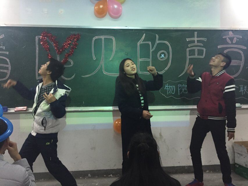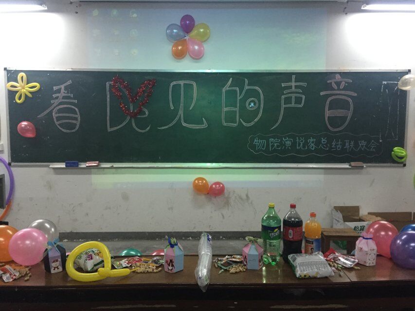 2016年12月23日晚7点,物院演说家协会在教学楼114教室开展了以“看得见的声音”为主题的总结联欢晚会,本次总结联欢会由协会会长李倩主持,并邀请了指导老师陈玮,公共管理系学生会主席王康、副主席刘瑛,以及书画爱好者协会、街舞协会、创业者协会代表参与。