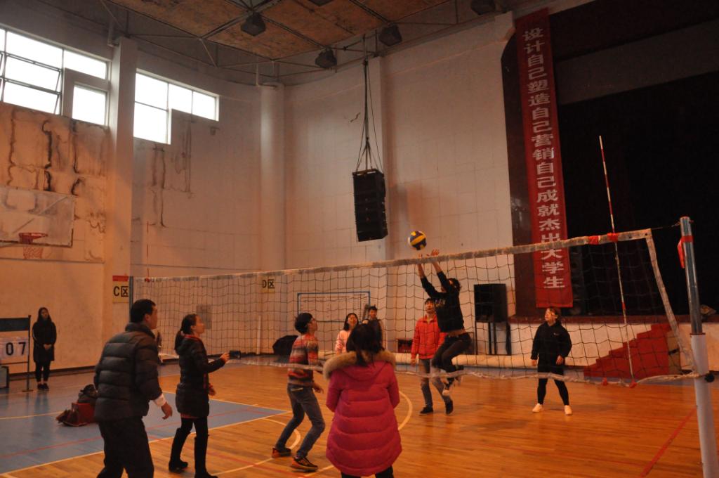 比赛开始之前,各班成员均到体育馆为自己班级的队伍呐喊助威。比赛一开场气氛就紧张起来,参赛队员注意力高度集中,全身心投入比赛中。比赛中常有两队你追我赶,比分相互追赶的情况发生,整个体育馆沉浸在加油声的回响中。虽然教工队的比赛成绩不记入最终总成绩,但是老师们依旧认真对待比赛,在教工一队VS物管工队的比赛中,第一局失利的教工队后来凭借高度的默契和稳健的节奏连追两局,尽展教师风采。