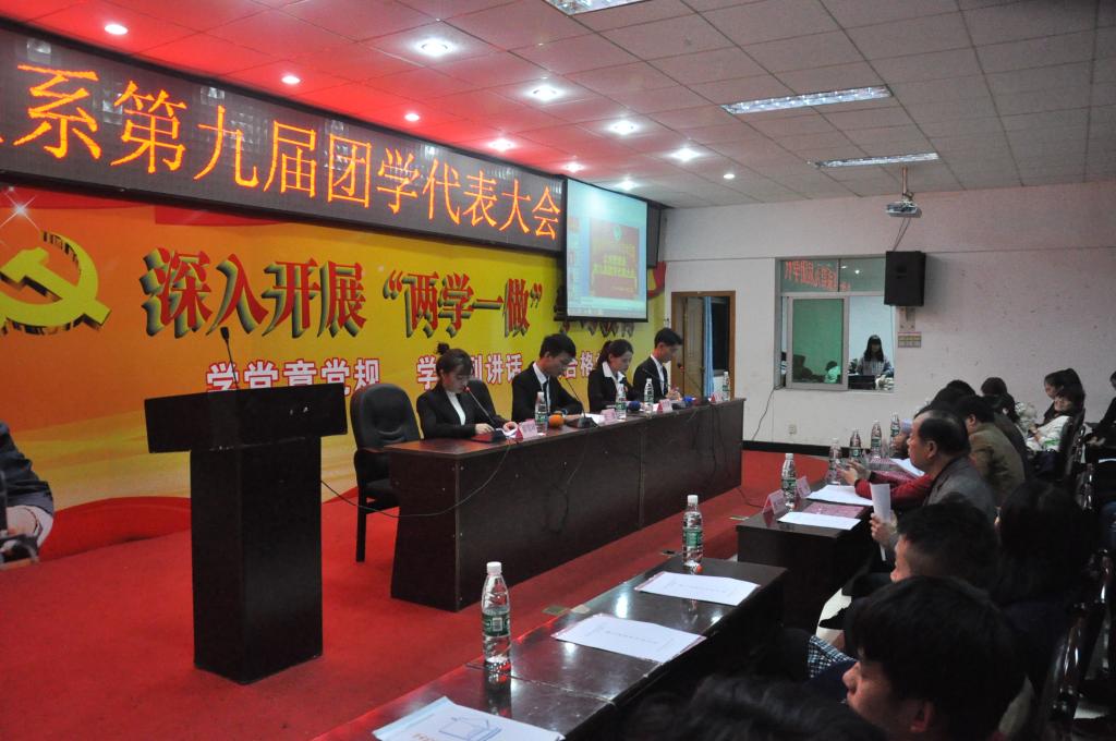 2016年11月2日晚6:30,9999js金沙老品牌公共管理系第九届团学会代表大会于办公楼四楼会议厅隆重召开。出席本次大会的有公共管理系主任赵翾、学生干事高行刚、团总支书记陈玮、辅导员肖兴、李娟、邵立伟、陈诗师、汤澜、贺婷婷九位老师,以及院系团学学生干部代表和各班代表共计200人。