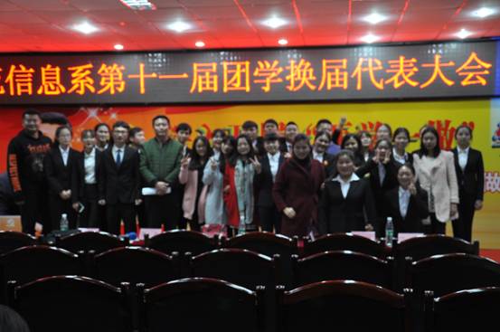 最后,由系团总支书记丁晓老师宣读结果并请信息系学生干事谢礼致辞。本次大会竞选结果如下:吴林、龚亚男、谷晓晗、包帅、杨浩东、龙海吟、杨斯智、赵娟、曾超群、曾静、陈洁、杨腾、罗翔琳共十三位同志进入到团学主席团,大会闭幕,全体起立,伴随着《国际歌》慷慨激昂的歌声,本次大会圆满结束!