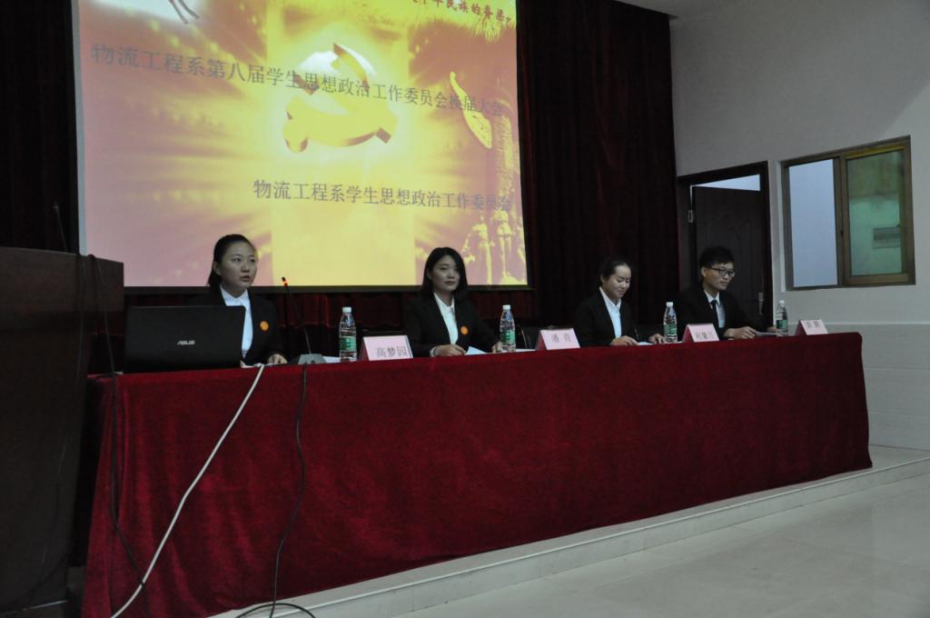 2016年11月8日晚上7时,物流工程系在学术报告厅举行第八届思政委员会换届选举大会。出席本次大会的有物工系党总支副书记梁飞老师、系学生干事梁林飞老师、系团总支书记高琪昕老师和辅导员马菊老师。与会成员有各系思政委员会代表、学生党员代表、学生入党积极分子代表及各班级代表。大会由高梦园同志主持,潘青、程馨月、彭鹏三位同志分别对上届思政各项工作进行总结。
