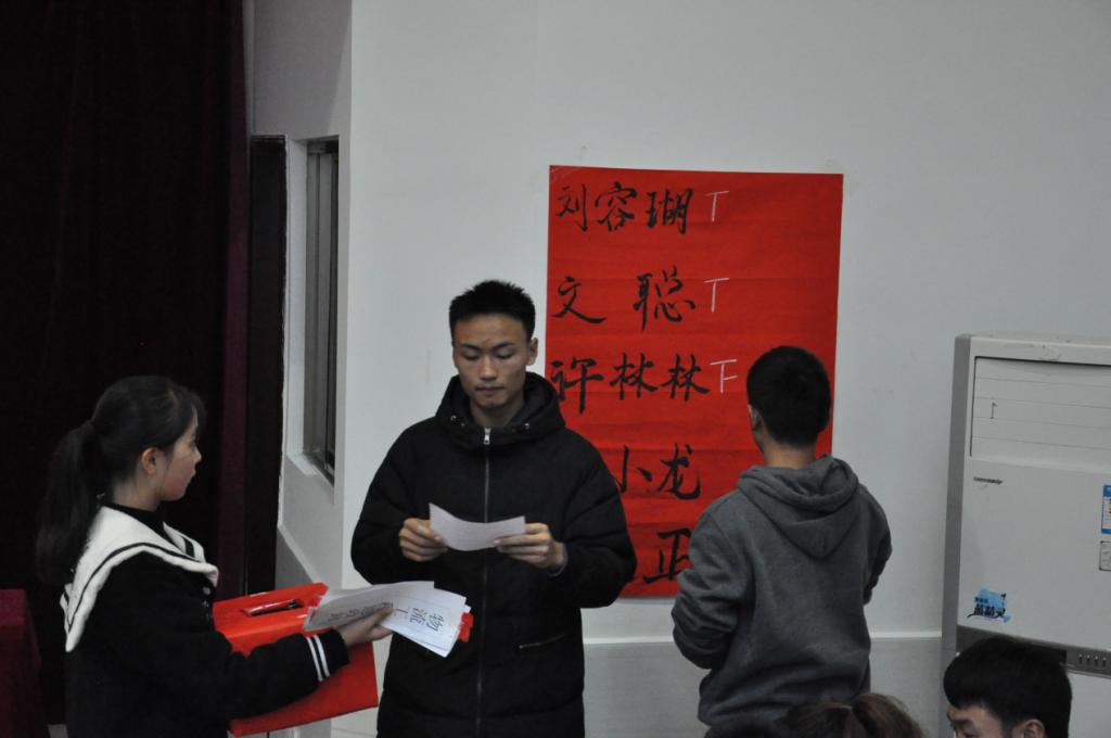 大会在国歌和院歌中正式开始,院思政委员会主任沈港同志致贺词;随后,物工系思政主席团潘青同志向大会做委员会工作总结报告,主席团程馨月同志向大会宣读《新一届主席团成员资格审查报告》,主席团彭鹏同志向大会宣读《新一届代表选举办法》。听完刘容瑚等五位竞选人热血沸腾的演讲后,便是紧张而又激烈的投票环节,投票秉着公平、公正、公开的原则,总监票人梁林飞老师当场随机设定监票人2名,计票人2人,唱票人2人,唱票人宣读票数,计票人当场计票。