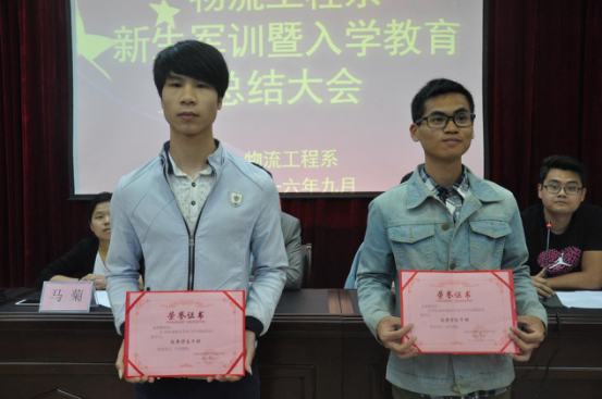 2016级新生军训已落下帷幕,为鼓励同学们保持军训风采,弘扬军训生活中的优良品质,物流工程系于2016年9月29日上午9时在图书馆学术报告厅举行新生军训暨入学教育总结大会。系党总支副书记梁飞、系学生干事梁林飞、系团总支书记高琪昕和辅导员马菊出席了本次会议。