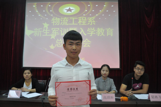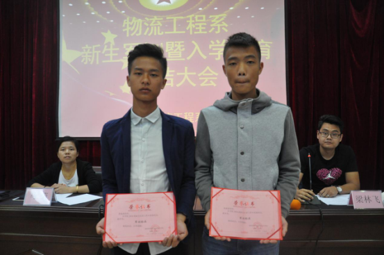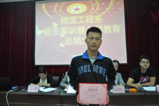 此次大会由梁林飞主持,首先,梁林飞对系部军训期间各项工作完成情况进行汇报。随后,高琪昕宣读系部军训表彰决定,梁飞与高琪昕共同为受表彰者颁奖并加以鼓励,望获奖的同学在接下来的学习生活中再接再厉,起好模范带头作用,同时鼓励其他同学也继续努力。