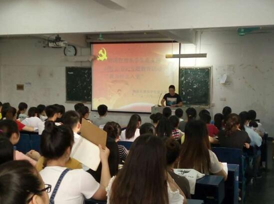 活动先由学生党支部周丹老师对预备党员和入党积极分子培养、考察、发展做了详细的介绍,系统的告诉各位同学入党的流程以及各方面注意的事项。再由系党总支书记刘松山书记以“我为什么入党”为专题教育,主要讲解了学生支部发展党员的条件,要求大家端正入党动机并严格要求自己,最后系统的讲解了“两学一做”的积极性和怎样贯彻落实好“两学一做”。
