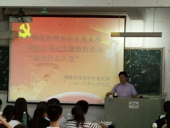 为加强物流管理系预备党员和入党积极分子的党性修养以及端正入党动机。物流管理系思政工作委员会于2016年6月7日在教学楼300教室召开专题“我为什么入党”的教育活动。整个活动由思政工作委员会主导,成长预备队协作完成。