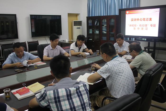 按照学院和实训中心“两学一做”学习教育的安排,2016年6月14日下午,围绕“讲规矩、有纪律”主题,实训中心党总支组织全体党员进行了第二专题“讲规矩、有纪律”的集中学习。集中学习由党总支书记袁云斌同志主持,宣传委员陈玉林同志组织全体党员认真学习了《中国共产党廉洁自律准则》、《中国共产党纪律处分条例》和习近平总书记重要讲话《用铁的纪律维护党的团结统一》以及《守纪律、讲规矩是党的事业取得胜利的重要保证》、《政治纪律是最重要、最根本、最关键的纪律》等文章。