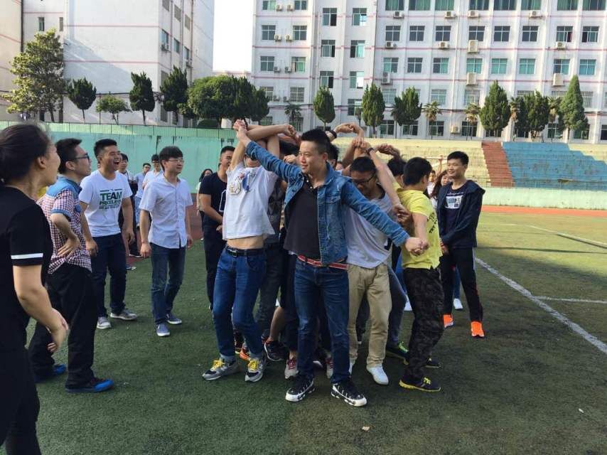 活动开始之前,同学们绕操场跑两圈,进行游戏前的热身运动。接下来,在负责人讲解完游戏规则后,所有同学分成五组,每组十人,小组以圆圈的形式站成一个向心圈,同时每个人把左右手与其他人的左右手交叉扣起来,最后互相握手连结成一个环。游戏任务是在不松开各自的手的情况下,想办法把这张“乱网”解开。一声哨响后,各组同学都使尽全身解数,想方设法寻找突破口,大家共同想办法,相互出主意,不断改进方案。随着时间的流逝,有的组进度渐渐加快,局势渐渐明朗,思路越发清晰;有的组的“乱网”却越发纠结混乱,最终当游戏时间结束时,只有一组成功解开。有人为成功而激动,有人为失败而遗憾,但每个人都享受在游戏氛围中,感受着集体游戏的欢乐,感受着团队合作的愉快。在一片热闹中,本次活动也达到了预期的效果。