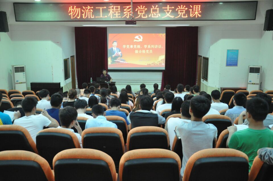 2016年5月30日晚7点,物流工程系党总支学生党支部“两学一做”专题学习教育会在图书馆一楼学术报告厅召开,主讲老师是物工系梁飞书记。参加此次党课的有物工系思政协会成员及物工系学生预备党员、入党积极分子。