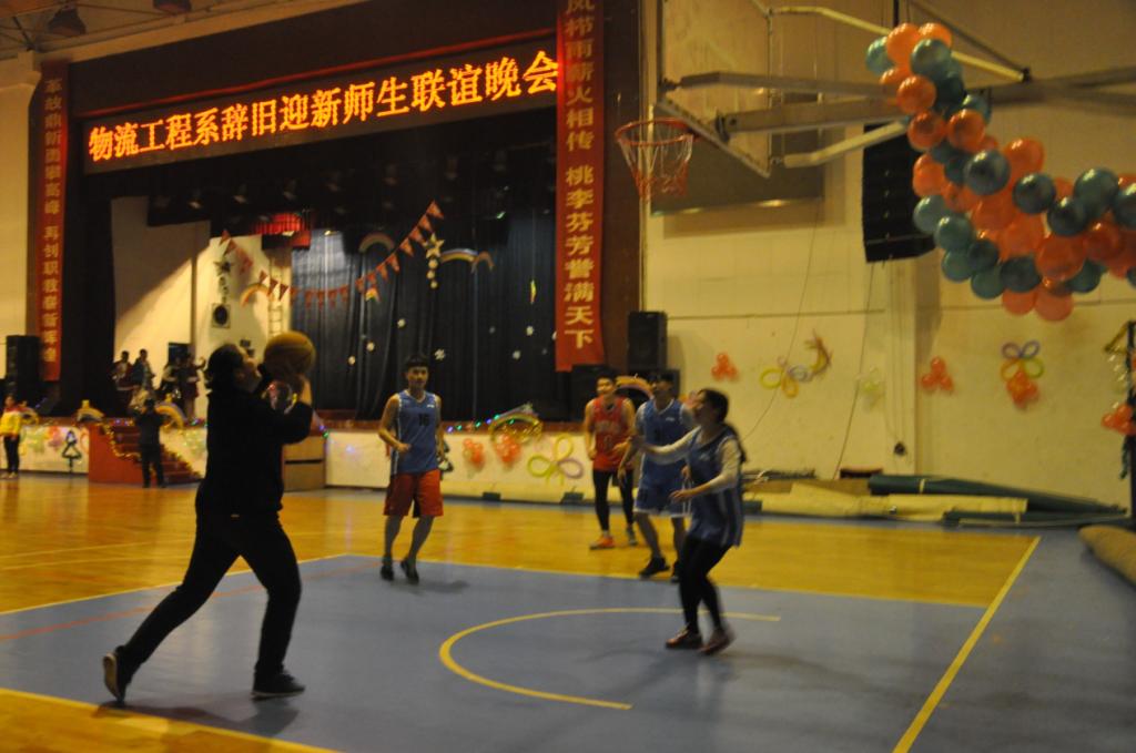 晚会是由物工系辅导员高琪昕老师与夏剑涛同学主持。为了体现我系独有的特色,本次晚会一改传统晚会的流程,以一场篮球比赛赛程为框架,在每节比赛后插入老师和学生精心准备的表演节目。