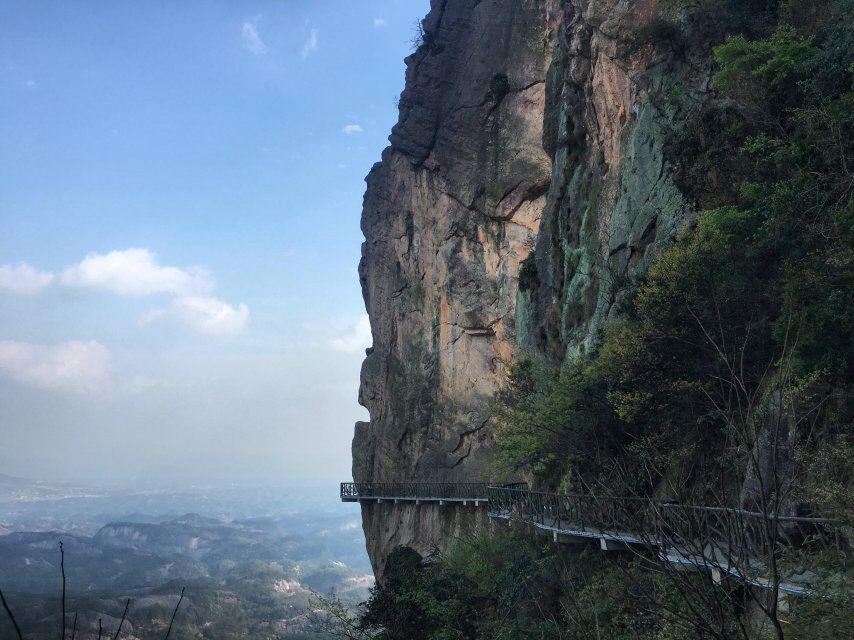 一路的欢声笑语,大家忙不失迭的拍着照,之后我们走过了仙人海观赏着美丽的春景,最令人回味的莫过于十里绝壁,他是是石牛寨的标志景观之一,这道从丹霞群峰中拔地而起的高危崖壁,横亘在景区中央,是目前国内所发现的最大规模的丹霞崖壁之一。我们在绝壁的栈道上尽情高歌,享受着大自然的无限风光。