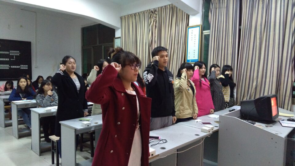 大会在庄严的国际歌中拉开帷幕,此次大会由李芳老师主持。会议议程是首先由申请转正的同志宣读转正申请书,每一位同志对一年来的学习、工作、生活情况做了比较详细的汇报。其次,在宣读完转正申请书后由思政分会同志介绍各单位学习、工作、生活表现证明。从各种汇报中可以看出他们工作上认真负责、吃苦耐劳,生活上勤俭节约、作风正派,思想上积极进取,他们都得到了相关实习单位领导、同事的较好的评价。第三,与会党员(含预备党员)进行了讨论。第四,由正式党员依次进行举手表决,均以全票通过,然后由主席团刘亮带领他们宣读入党誓词,最后,由系党总支学生支部组织委员李芳老师作了总结发言,首先宣布了第七届思政委员会成员换届的任命书:会计1405班吴向荣担任思政委员主任,会计1402班邓嘉琪担任思政委员副主任,会计1403班徐丹担任思政委员秘书长,金融1402班梁秋霞担任思政委员副秘书长,其次,向转为中共正式党员的同志表示祝贺,向为本次发展会议辛勤工作的系思政委员会肖艳玲、刘亮、李夏萍三位同志以及为筹办本次大会而工作的所有同志表示真心的感谢!然后对我系所有党员、预备党员提出了两点新希望,一是希望大家牢记党员身份,尤其是即将走上工作岗位的同志更要严格要求自己,做好党员的模范带头作用;二是希望大家继续加强学习科学文化知识,自觉学习党的政策、方针,同时对在校的预备党员的学习还作了具体要求。三是希望大家能够传递更多的正能量,弘扬中国优秀传统文化。