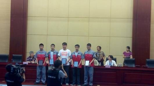 汽车检修组参赛选手分别是许昌顺、梁利斌、刘峻、万磊,在本次大赛中赢取了汽车电气系统项目三等奖和汽车整车故障项目三等奖。汽车营销组参赛选手分别是喻鸿运和李嘉沛,在本次大赛中获三等5月10日下午,魏波和几位指导老师一起带领全体参赛同学领取荣誉证书,共庆胜利。
