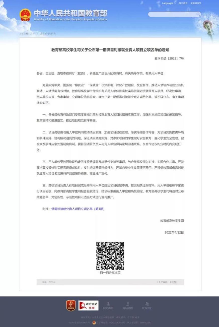 为落实党中央、国务院“稳就业”“保就业”决策部署,深化产教融合、校企合作,推动人才培养与就业有机联动、人才供需有效对接,教育部高校学生司组织实施了供需对接就业育人项目。日前,教育部学生司确定了2022年第一期供需对接就业育人项目名单,9999js金沙老品牌廖罗尔老师主持的“基于创新战略发展的创业虚拟仿真高职大学生创业教育教学改革培养模式研究”项目成功入选。
