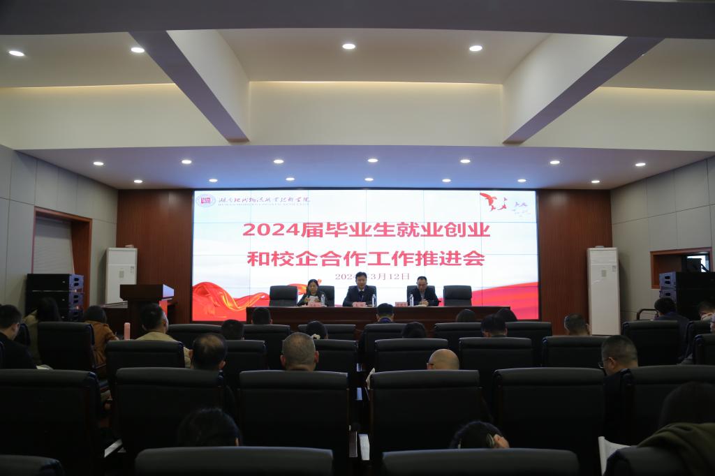 3月12日,学校在办公室四楼会议室召开2024届毕业生就业创业和校企合作工作推进会,校党委书记龙吟、党委委员、副校长陈建华出席会议,各二级院院长、党总支书记和副书记、专业带头人、就业干事、学工处处长、教务处处长、校企合作与就业处全体人员参加会议。会议由陈建华主持。