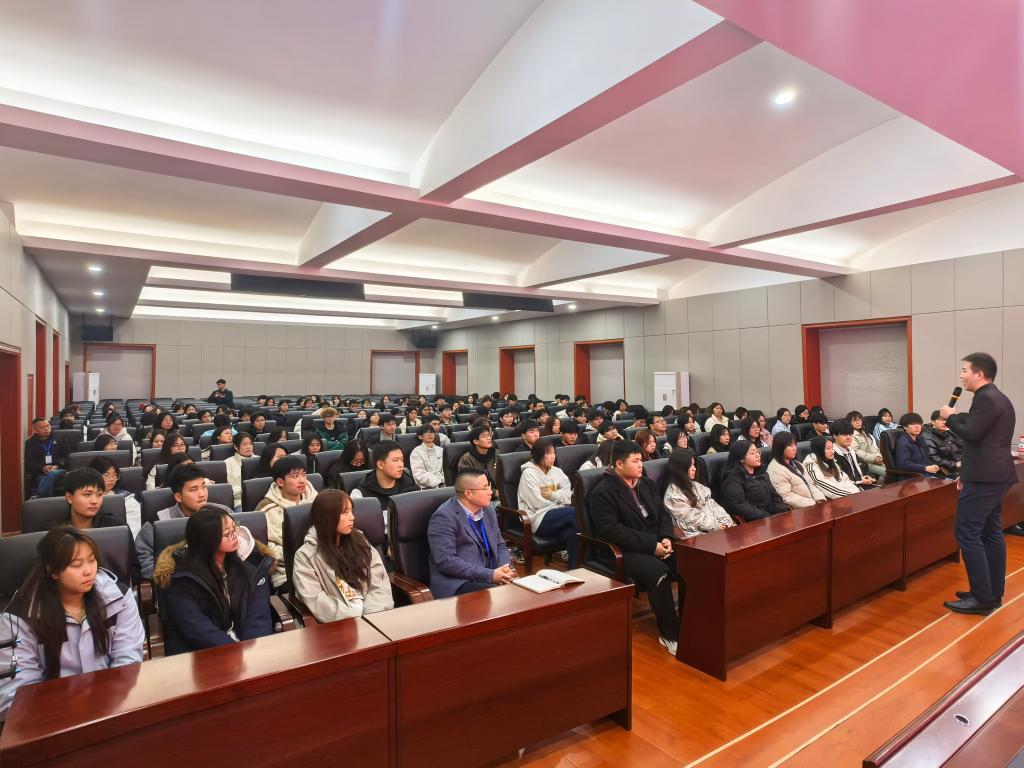 吴振华介绍了500强相关企业的详细招聘要求以及薪资标准,着重强调要总结招聘规律,聚焦招聘岗位重点能力要求,在不断地学习和实践中掌握深厚的专业知识和卓越的技能,确保在就业竞争中脱颖而出。他还结合自身成长成才经历向学生们传授经验与面试的技巧与方法,并对学生们表达了期望。希望同学们能未雨绸缪,提早准备,不断专注于提高自己综合素质,提升抗压能力,让自身变得有价值,用500强的用人标准要求自己,积极向上,每天学习,每天进步。同学们认真聆听,精彩的讲座赢得了阵阵掌声。