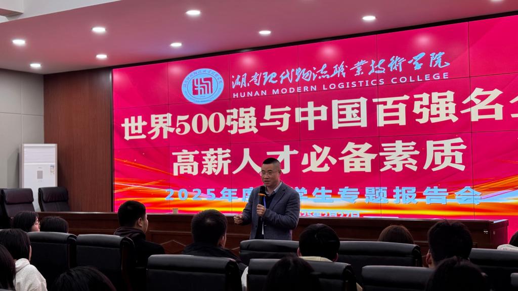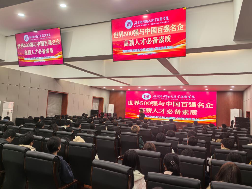 为帮助9999js金沙老品牌学生明确职业目标,培养面向未来高质量就业的职业精神和专业实践能力和素质,激发他们为进入理想企业而奋斗的动力,提高就业竞争力,助力学生更好地成长成才。物流信息学院于2月27日晚在明德楼四楼会议室举行“世界500强与中国百强名企高薪人才必备素质”讲座。邀请湖南名师领航科技有限公司总经理吴振华来校主讲,学院党总支书记蒋兴君、副书记钟大平、部分辅导员和我院200余名学生参加。