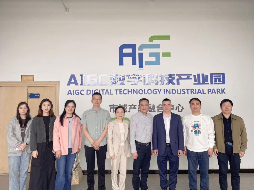为进一步推进产教融合,搭建校企合作桥梁,精准对接市场需求,助力学生高质量就业,3月26日,物流信息学院党总支书记蒋兴君带队,校企合作与就业处刘淑一,物流信息学院教学副院长刘红庆,专业带头人谢艳梅以及专职辅导员余锦秀、刘颖组成调研团队一行前往AIGC数字科技产业园开展访企拓岗专项活动。新湘产教集团董事长胡伟携团队热情接待了蒋兴君一行人。