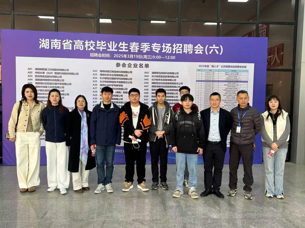 为切实推动毕业生就业工作,为学生搭建更广阔的就业平台,3月19日,物流信息学院党总支书记蒋兴君、副书记钟大平带领2025届毕业班辅导员,组织部分在长沙的毕业生前往湖南省人力资源服务中心一楼人才交流大厅,积极参加湖南省高校毕业生春季专场招聘会,精准助力学生实现高质量就业。