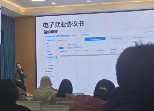 会上,李乐详细介绍了全国高校毕业生毕业去向系统的操作流程,并围绕系统的功能、数据填报要求、信息审核标准等方面进行了深入讲解。他强调,就业监测是提升毕业生就业服务质量的重要抓手,各毕业班辅导员及就业专干要高度重视此项工作,切实履行责任,指导和督促毕业生按时、准确填报就业去向信息。同时,要加强数据审核,确保就业统计工作的严谨性,为学校就业质量分析和决策提供有力支持。