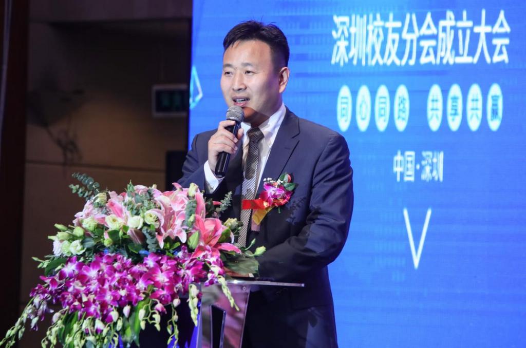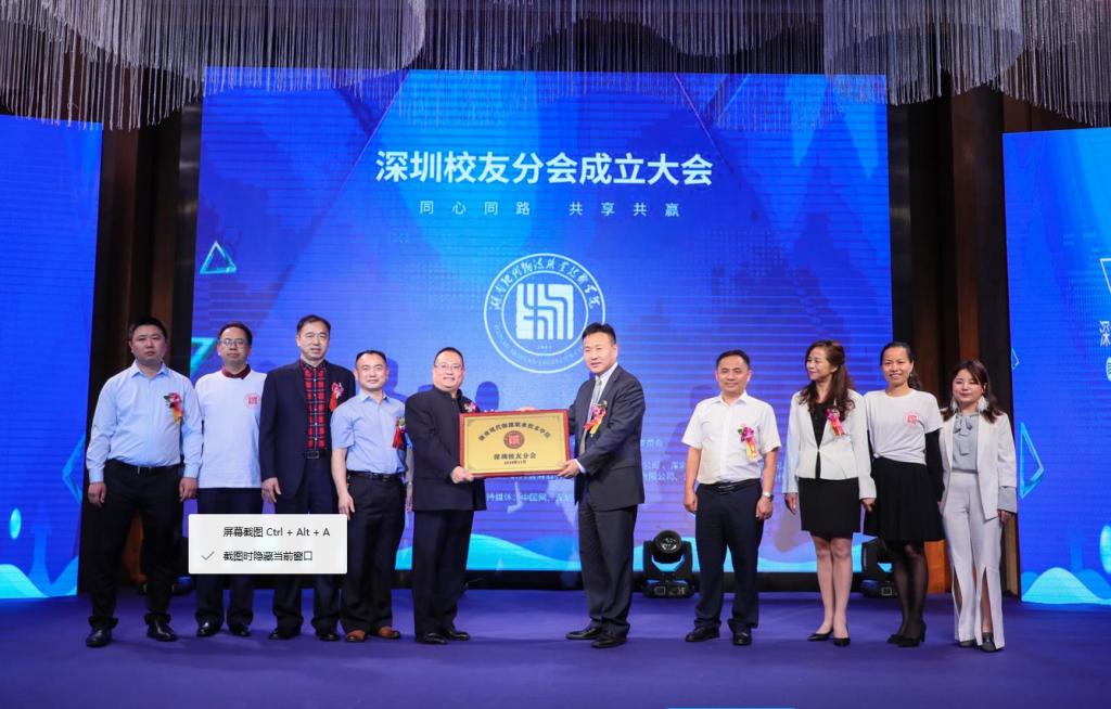龙吟代表学校向陈建华授予深圳校友分会会牌