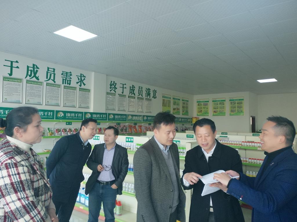 龙吟一行先后参观了锦绣千村合作社创办的内部资金互助社网点、农资物流配送中心、电商服务中心、锦绣千村粮食产业园。在参观过程中,锦绣千村合作社理事长龚佑琼详细介绍了合作社以县、镇、村三级服务体系为载体,为农民、成员提供农资采购配送、土地托管、集中育秧、统防统治、机耕、机插、机收、烘干仓储、农产品购销、技术指导、新职农民培育、内部资金互助等服务和构建“供销合作、生产合作、信用合作、教育培训”四大服务平台的情况。
