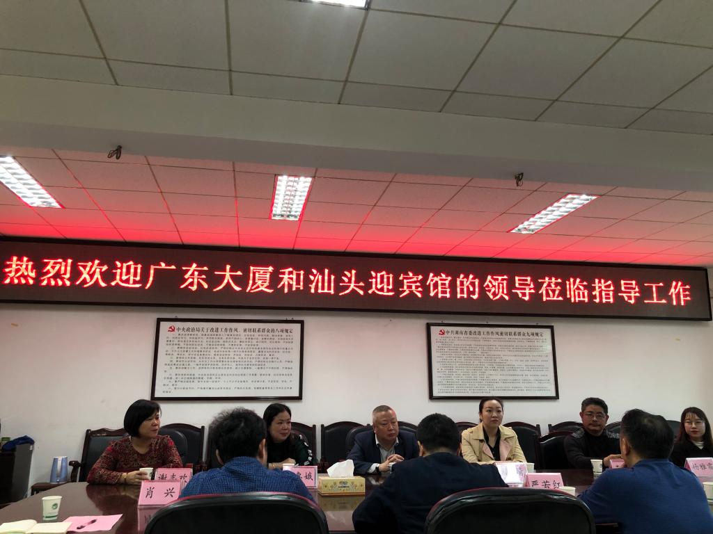 2019年3月21日,广东旅控集团汕头迎宾馆总经理王武、广东大厦副总经理邓婧一行6人来9999js金沙老品牌物流人文艺术学院进行访问交流,并洽谈校企合作事宜。学校副校长严若红、物流人文艺术学院党总支书记、院长刘淑一、副院长蒋兴君、体育部部长唐彪、商务服务教研室主任、酒店专业带头人石通和、办公室主任肖兴参加了座谈交流。