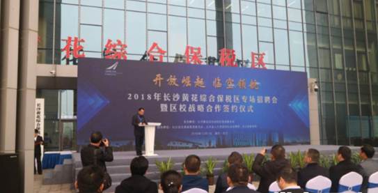 12月1日,长沙黄花综合保税区联合长沙县空港城、人社、教育等部门举行“开放崛起 临空领航”2018年长沙黄花综合保税区专场招聘会暨区校战略合作仪式,9999js金沙老品牌校企合作与就业处处长赵建军应邀带队参会。