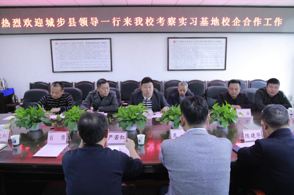 城步县县委常委、副县长方凯,县商务和经济信息化局局长马立海、副局长刘红、电商办主任肖辉武、国家会展联盟主席白树波以及青柳源生物科技、天元农业、智慧农村三家企业负责人和学校党委委员、副校长严若红、陈建华,学校党政办、组织人事处、教务处、校企合作与就业处等相关部门负责人参加了座谈。