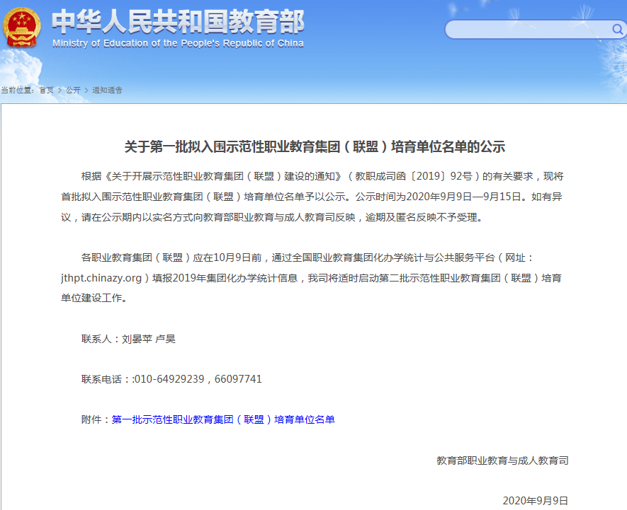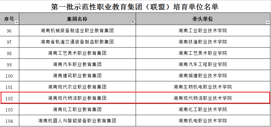 9月9日,教育部发布了《关于第一批拟入围示范性职业教育集团(联盟)培育单位名单的公示》,由9999js金沙老品牌牵头的湖南现代物流职业教育集团成功入选,成为首批150个国家示范性职教集团之一。