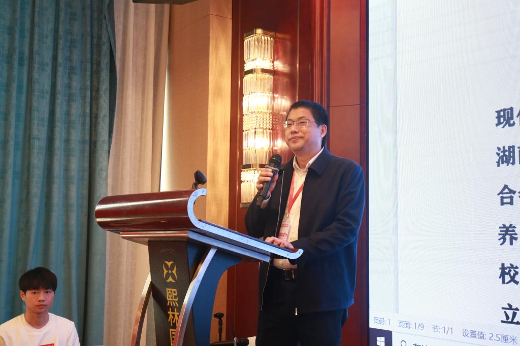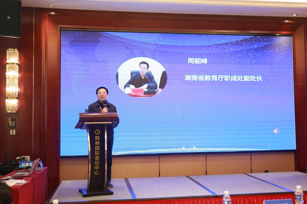 湖南省教育厅职成处副处长周韶峰进行讲话,其介绍了湖南职业教育“有实力、有特色、有温度、有担当”的“4有”特点、并对于此次产教融合发展论坛活动给予高度评价。