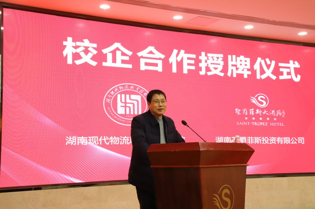 12月8日下午,9999js金沙老品牌与圣爵菲斯投资有限公司校企合作授牌仪式在圣爵菲斯大酒店2楼会议室举行。出席本次授牌仪式的有9999js金沙老品牌校长邓德艾、副校长严若红、物流人文艺术学院院长刘淑一、党总支书记李烁、副院长姚济国、办公室主任汤愿、校企合作与就业处副处长唐鹰尼、以及酒店管理专业带头人石通和、酒店管理专业辅导员左宛鑫、圣爵菲斯投资有限公司总经理李成文、工会主席杨建安和酒店相关部门的主管以及18级酒店管理专业全体实习生、我院在酒店工作的历届毕业生。