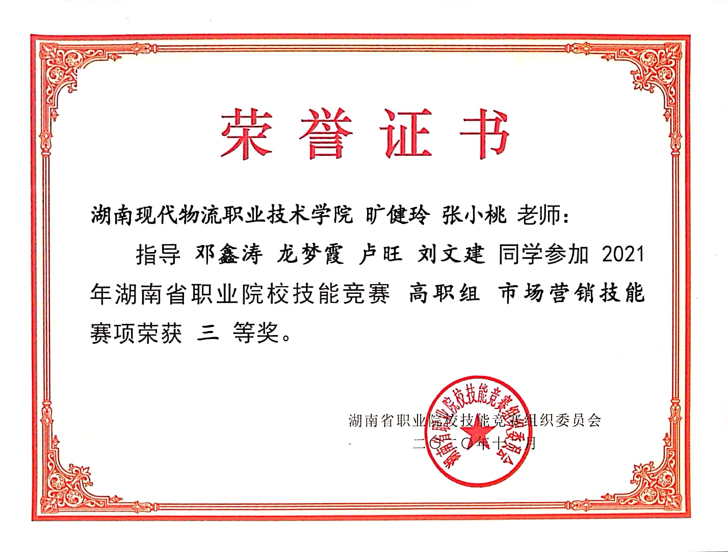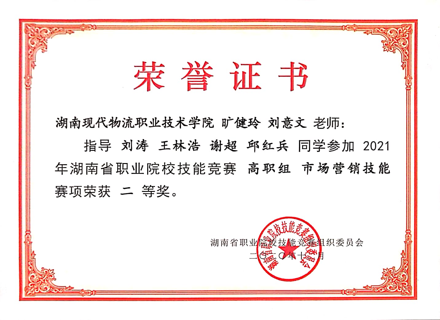 技能竞赛“市场营销技能”赛项中获二等奖、三等奖