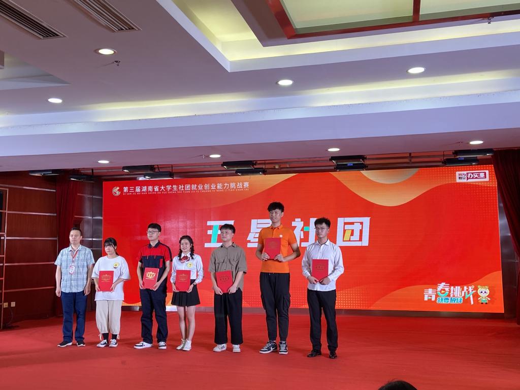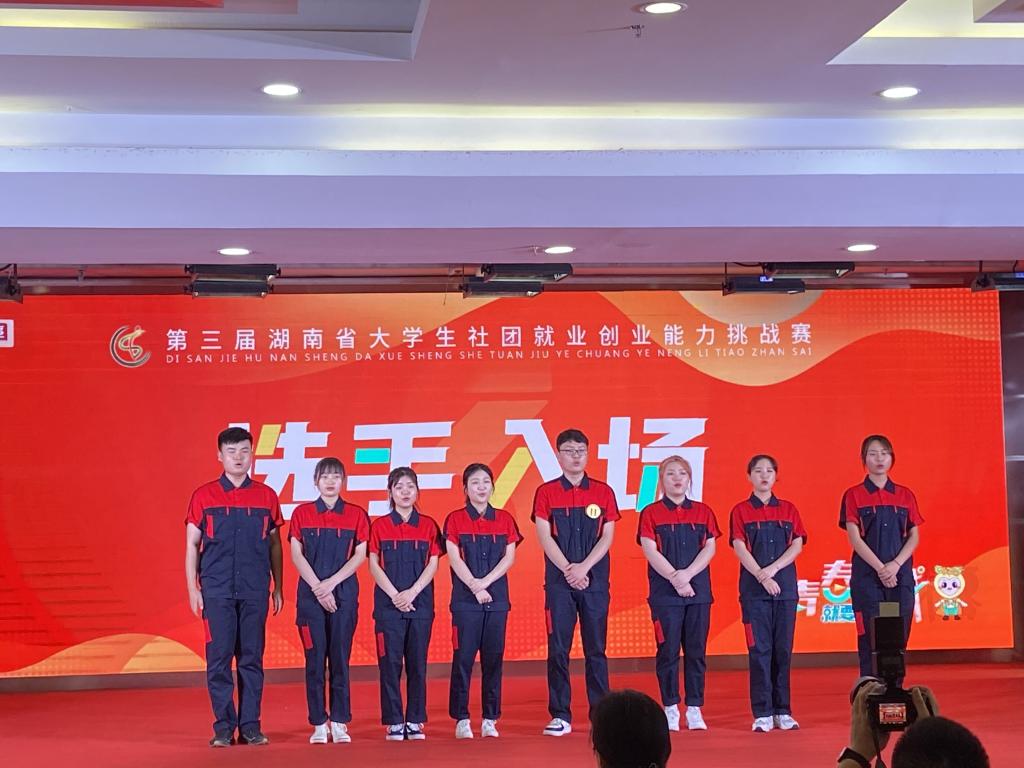 2021年6月18日下午,由中共湖南省委网信办、湖南省人力资源和社会保障厅、湖南省教育厅、共青团湖南省委共同举办的第三届湖南省大学生社团就业创业挑战赛总决赛在湖南人才大楼热烈举行,省人社厅、省委网信办、省教育厅、团省委等相关领导出席了此次盛典。应组委会邀请,在开场视频中,校长邓德艾向大赛表示祝贺与支持,希望青年大学生能握住社团活动这把“金钥匙”,锻造出彩人生。接下来,进入总决赛的12支队伍分别进行了风采展示、创业实战展示及才艺比拼,激动人心,精彩纷呈,共同为在场观众奉献了一场视听盛宴。