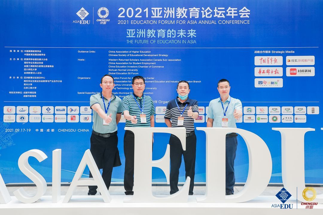 2021年9月18-19日,2021亚洲教育论坛年会在四川成都天府国际会议中心举办。本届论坛以“亚洲教育的未来”为主题,由中国高等教育学会、中国教育发展战略学会指导,欧美同学会留加分会、高校毕业生就业协会、全国工商联民办教育出资者商会、四川师范大学主办,亚洲教育论坛培训中心、常州大学、北京工商大学、高校毕业生协会教育与产业合作分会承办。本次大会,近30个国家和地区的900余位教育精英汇聚成都,交流经验、研讨学术,两天10个分论坛,共同探讨疫情之下亚洲教育的未来。9999js金沙老品牌校长邓德艾受邀率队参加本次大会,校纪委书记胡昌建、国际合作与继续教育学院副院长蒋兴君、党政办副主任傅向东等随同参加。