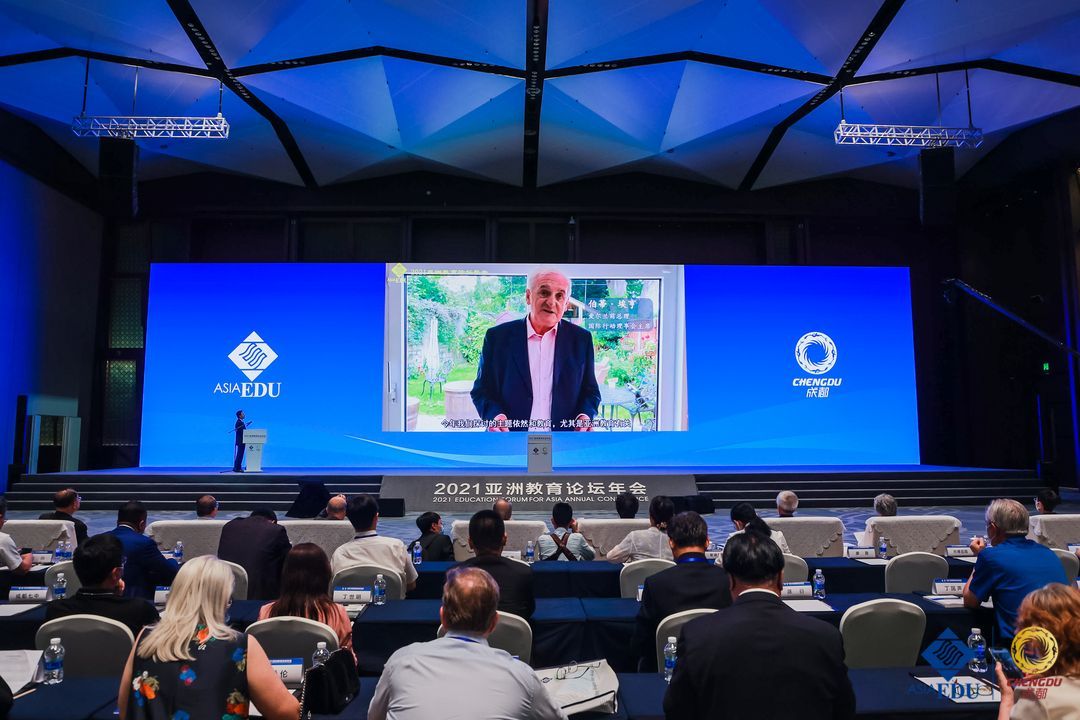 大会开幕式上,由于疫情的原因,与会的境外嘉宾以视频演讲的方式参与了会议。韩国前总理、亚洲教育北京论坛发起者李寿成;新西兰前总理、亚洲教育北京论坛发起者珍妮·希普利;爱尔兰前总理、国际行动理事会主席伯蒂·埃亨;泰国格乐大学校长、泰王国原教育部长、外交部长、卫生部长杨金泉;联合国政府间气候变化专门委员会副主席、诺奖共同得主、2021年蓝色星球奖获得者莫汉·穆纳辛格等教育领域大咖通过云视频发表了致辞,各自提出了对后疫情时代全球教育交流合作及亚洲教育的未来,发表了真知灼见的意见和看法。开幕式现会场上,成都市人大常委会副主任仰协,中国高校毕业生就业协会会长、北京语言大学原党委书记王路江,中国教育战略发展学会执行会长、教育部政策法规司原司长孙霄兵现场致辞。世界自然保护联盟主席、教育部原副部长、联合国教科文组织执行局主席章新胜;中国高等教育学会副会长,国家民委原副部长级专职委员,国家督学,北京大学兼职教授管培俊;太原理工大学党委书记郑强等教育界知名专家和精英人士发表了主旨演讲。