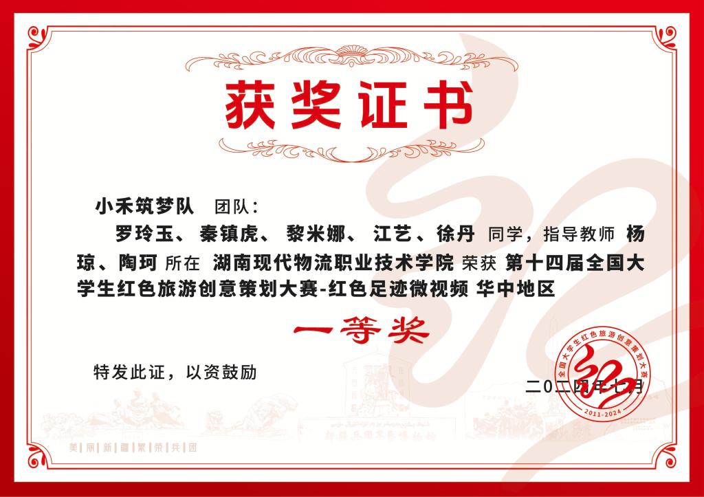 杨琼指导学生获第十四届全国大学生红色旅游创意策划大赛红色足迹微视频华中地区一等奖