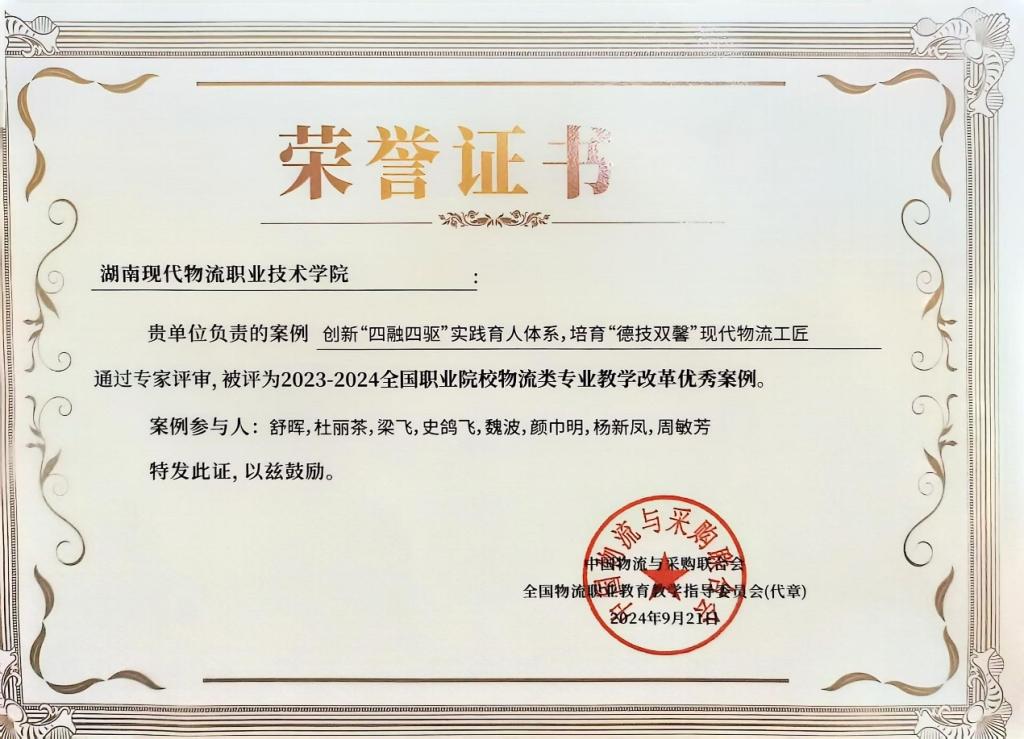 荣获2023-2024全国职业院校物流类专业教学改革优秀案例