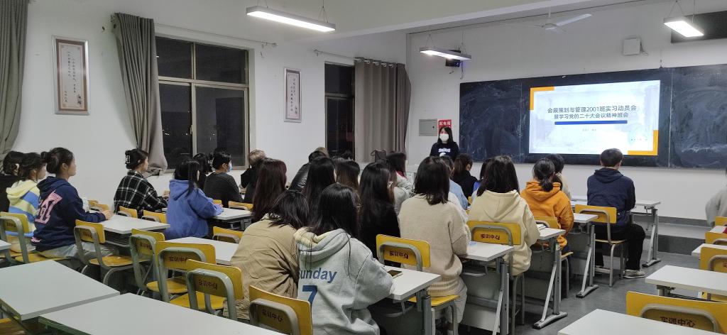 为深入学习宣传贯彻党的二十大精神,落实学院相关实习政策,部署2020级学生实习工作计划,提高学生对自身实习工作的认识。根据学院要求,会展专业于11月14日,在教学楼301开展学习党的二十大精神暨顶岗实习主题班会。班会由辅导员黄洁主持,会展策划与管理2001班全体学生参加。