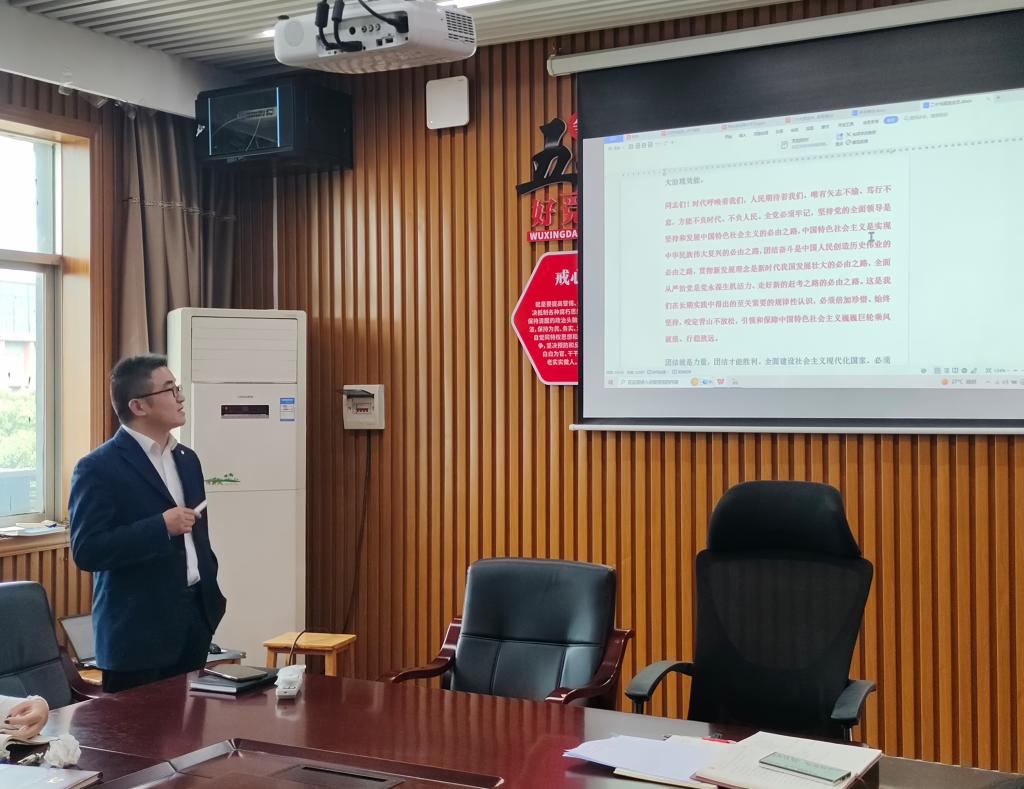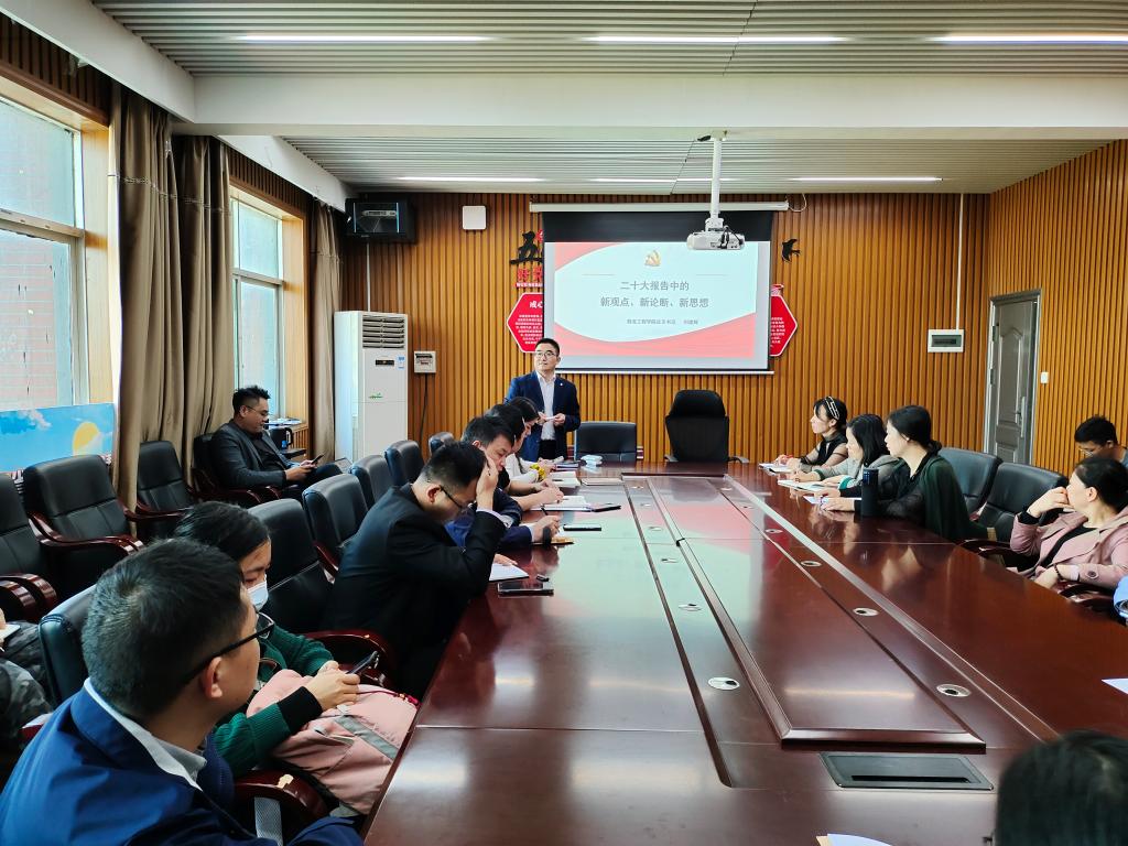 刘建辉书记以《二十大报告中的新观点、新论断、新思想》为题,着重从大会主题、三个务必、十年来的三件大事、找到跳出历史周期率的第二个答案、归根到底是两个“行”、中国式现代会的五个特点、中国式现代化的本质要求、牢牢把握五个重大原则、五个“必由之路”等十个方面讲解二十大报告中的新观点、新论断、新思想。强调党的二十大是在全党全国各族人民迈上全面建设社会主义现代化国家新征程、向第二个百年奋斗目标进军的关键时刻召开的一次十分重要的大会,是一次高举旗帜、凝聚力量、团结奋进的大会。要求在座各位要把学习和贯彻落实党的二十大精神作为当前和今后一项重要的政治任务抓好抓实,持续深入学习领会精神内涵,从中领悟出工作方法指导今后的教学科研工作;要发扬斗争精神,扛起自立自强的旗帜,守正创新,勇毅前行,为全面建设社会主义现代化国家贡献一份绵薄的智慧和力量。