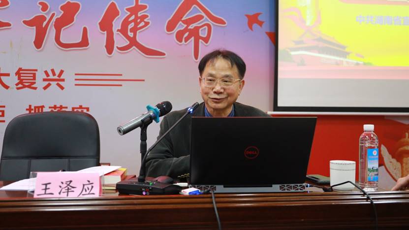 王泽应首先以南岳衡山祝融峰作比——党的二十大报告高瞻远瞩,意义深远。“湖湘文化”文脉重、文气强、文源深,与“守正创新”有着紧密的关系,在丰富生动的文化、哲思铺垫中,《谱写新时代中国特色社会主义更加绚丽的华章》的宣讲报告拉开序幕。