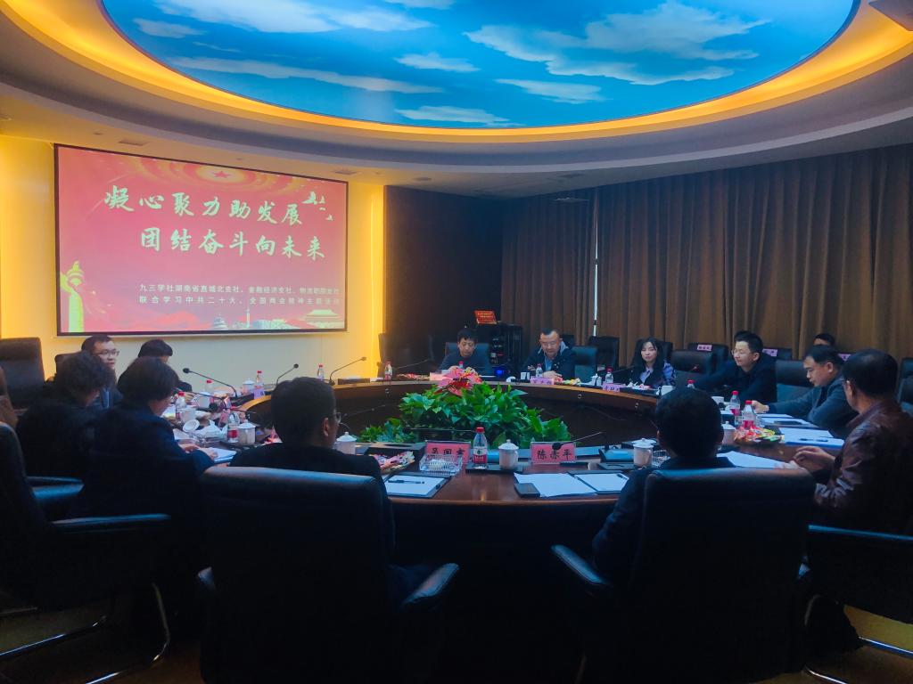 3月25日下午,九三学社物流职院支社与社省直城北支社、金融经济支社联合在湖南金磨坊食品有限公司开展“凝心聚力助发展,团结奋斗向未来”——学习中共二十大、全国两会精神主题活动。省政协原副主席、九三学社湖南省委会原主委张大方,九三学社湖南省委会主委陈赤平,专职副主委李少阳应邀出席。